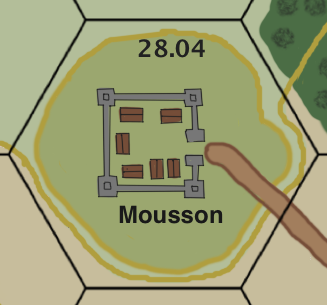 Mousson Hill (WWII:11.19) had the remnants of an ancient fortified church/monastery and is represented as a Fortified Area (WWII:12.12) village. MASL-rules will add: (6) fortified buildings, (8) trenches, (8) wire and (4) roadblocks. Buildings adjacent to trenches can be entered a 1MP as if they had cellars.