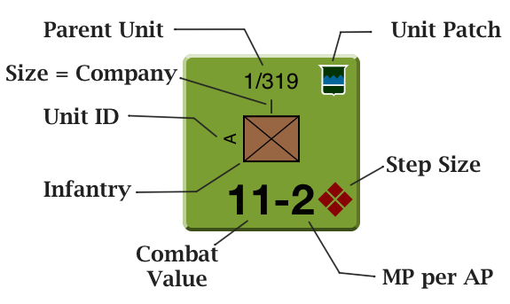 During their Operational Impulse the phasing player will spend OPs (Operational Points), which are a form of military currency representing their ability to issue orders and perform operations, such as moving units. After each Operational Impulse battles are resolved by rolling on the CRT (Combat Resolution Table). Battles can result in step losses or units eliminated, degradation of unit capabilities, retreats and pursuits, or if indecisive, an engagement. Battles that are engaged are ‘locked' until the next turn. Players will continue to alternate taking Operational Impulses until the turn randomly ends. At the end of the game turn all units will recover from degraded states.