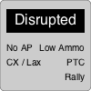 Units start out being in good-order and degrade to worsened states4 due to exertion performing actions or through combat. Units will transition from good-order, to becoming fatigued, to becoming disordered, to becoming disrupted, to becoming demoralized and finally to becoming dispersed, which represents a complete loss of unit cohesion such as desertion and routing. At each degraded stage the unit has one less AP (Action Point) and has reduced capabilities and performs worse in combat. The worse the degradation, the longer it takes to recover. While it is possible for Commanding Officers to drive their units into the ground, it has consequences.