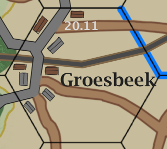 The Allied victory conditions are based on getting units from the British 30th Corp off the north map edge, capturing and holding towns, bridges and the City of Nijmegen. Points are also awarded for destroying enemy units and having British units North of the Waal River or having exited the board. If the British have less than 20 points North and/or Exited the German Player wins.
